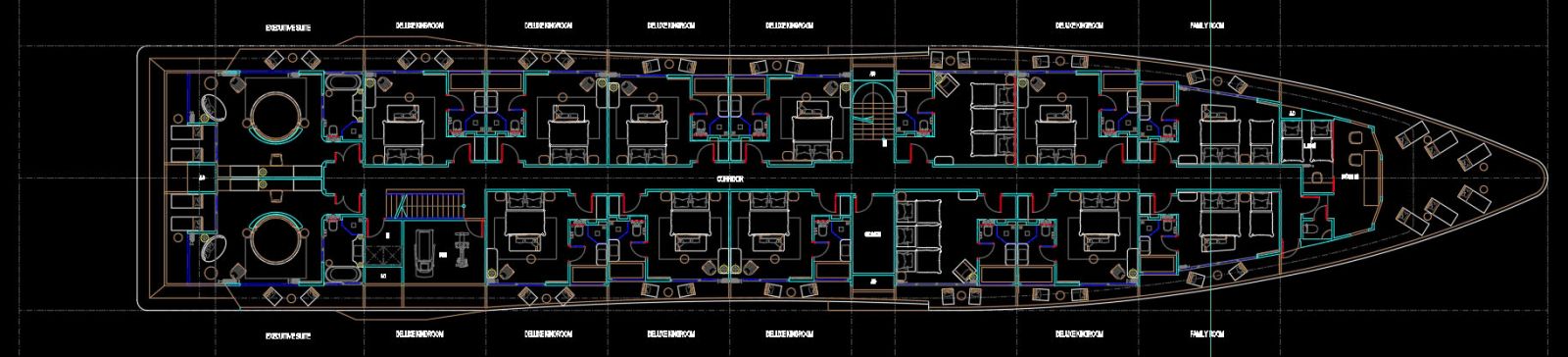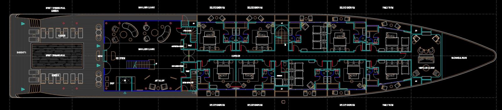 - Massage and Spa / Kitchen area / Crew rest compartments / Crew community rooms / Engine room.
